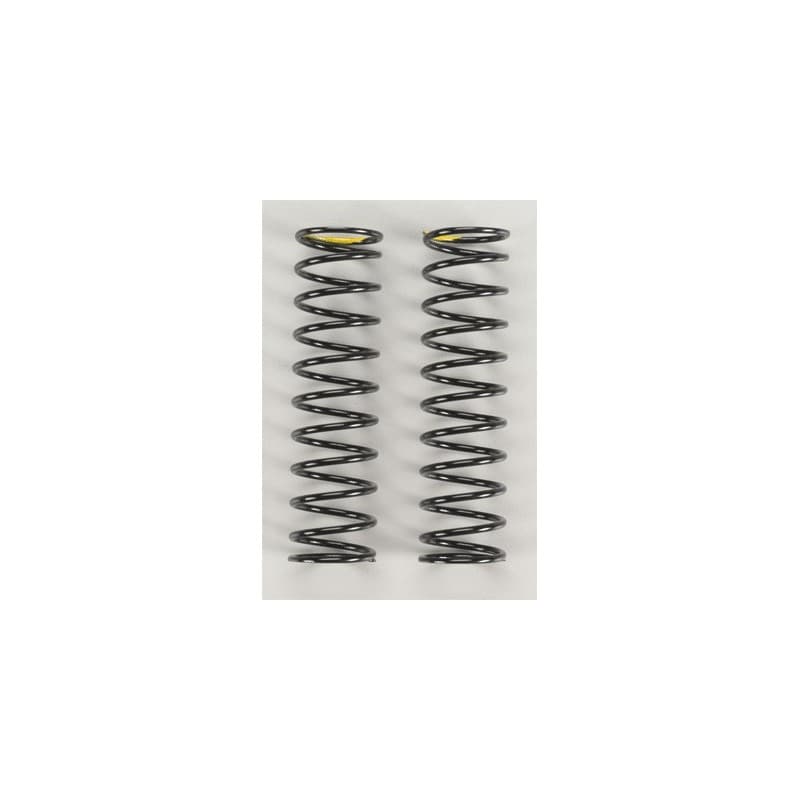 HPI Racing shock springs 18x80x1.8mm 11.5 coils (Yellow 177gF/mm). The Hellfire designer thought about the fact that colored springs on your car can sometimes just simply look disco and the race savvy competition can see what spring rates you are running from a hundred feet away. While stealth black is always the cool color to use, the Hellfire springs do have color markings at the top of the springs to indicate six different spring rates to choose from. This offers a wide range of tuning of the suspension to improve the handling of the Hellfire on a variety of different surfaces. The factory Hellfire spring settings are Silver for the front and Yellow for the rear. The Hellfire spring ends are precision ground for a flat surface on the spring perches. To help aid in tuning, each spring is rated in gf/mm and comes with a handy spring chart.