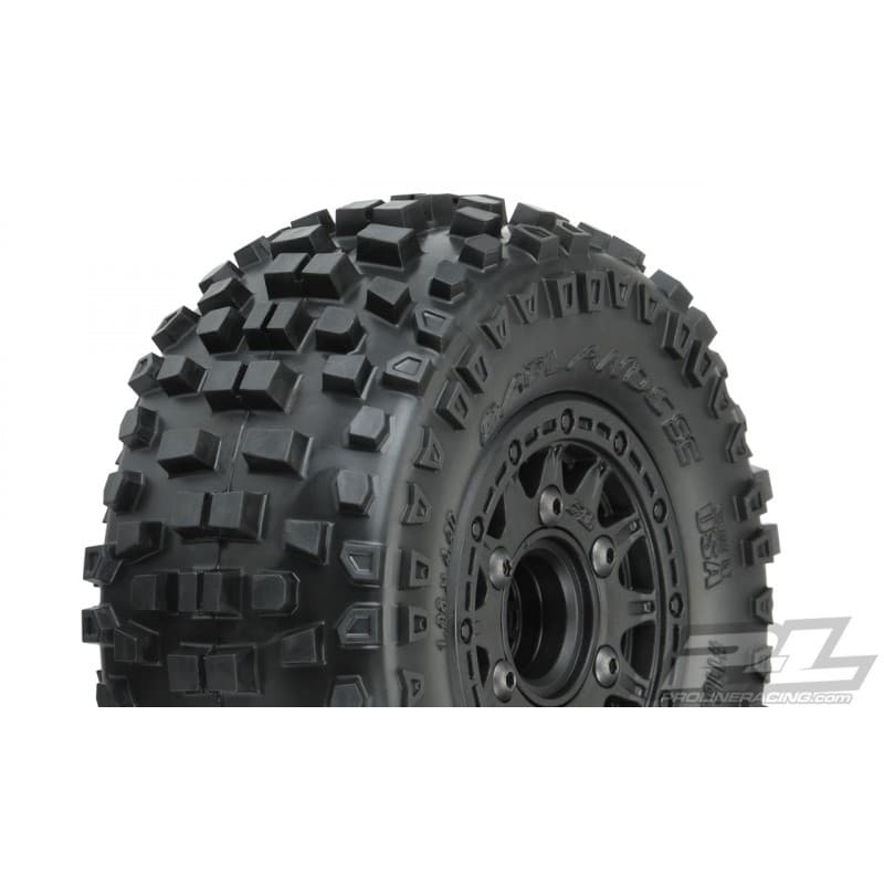 This is a pair of pre-mounted Badlands All-Terrain Short Course Tires. Are you ready to chew up the dirt and spit it out in a huge spray behind your SC truck? If so, then the Badlands SC tire is exactly the tire that you have been waiting for. The Badlands SC tire offers motocross style tread with huge, long-lasting lugs giving it the looks and performance that have won over bashers all across the globe. The Badlands tread design is made for the die-hard motocrosser in you. Its oversized grass and dirt shredding lugs offer you the ultimate in performance under all-terrain type conditions. The lugs are designed to ensure longevity while spitting up the surface below. Made from soft yet durable M2 compound, the Badlands tire is poised for battle and ready to take your Short Course Truck to the next level of bashing heaven.