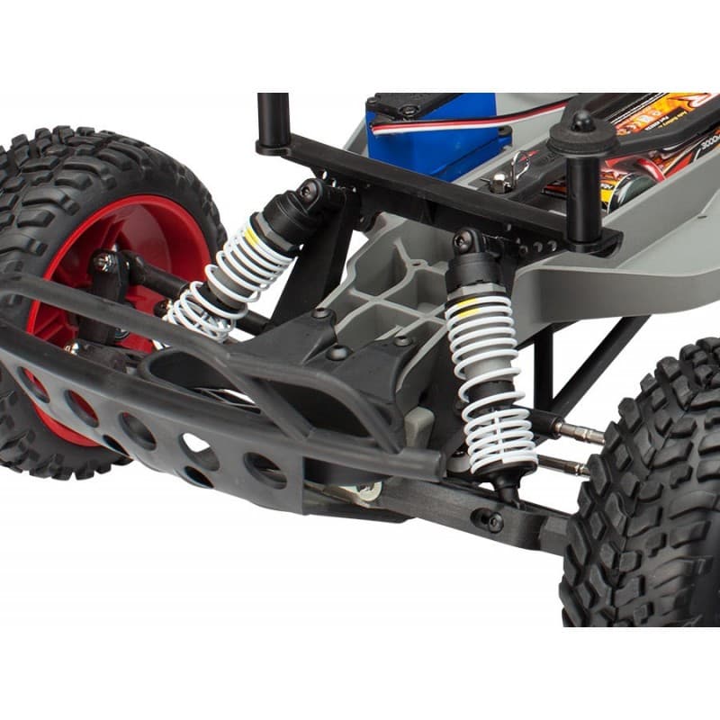 When the racing action cools down, the Traxxas Slash is well-equipped to tackle all of your off-track driving adventures. The long travel suspension and oil-filled shocks easily absorb jumps and rough terrain. The unique chassis design provides huge center ground clearance to drive over deep ruts, rocks, and other obstacles that leave ordinary R/C trucks stuck. The tires use advanced tread design and sophisticated rubber compounds to provide incredible grip off-road with enough versatility to also perform well on concrete and asphalt. The fenders cover the tires so you bang against your driving buddies without getting tangled up.