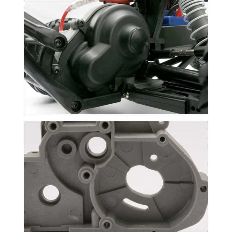 The Revo-spec Torque-Control™ slipper clutch design delivers smooth operation, precise adjustment, and consistent traction control. The bellcrank steering system virtually eliminates bump steer for precise handling and control. A digital steering servo delivers lightning fast response.