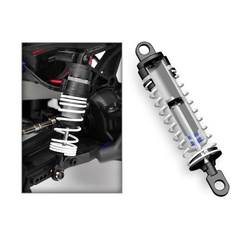 Traxxas Stability Management (TSM) allows you to experience all the extreme power, speed, and acceleration that was engineered into the Slash 4X4 by making it much easier to control on common slippery surfaces such as loose dirt, smooth concrete, and even ice and snow. Punch it off the line and TSM goes to work sensing the vehicle’s direction and making steering corrections to provide straight-ahead full-throttle acceleration without fishtailing, spinouts, and loss of control. TSM also works during cornering, first making intuitive corrections to maintain your line, and then allowing you to hammer the throttle earlier in the turn for much faster exit speeds. Braking is dramatically improved as TSM works to keep you arrow straight until you come to a complete stop. TSM acts as your on-board co-pilot in the vehicle that “feels” what the vehicle is doing and makes corrections for vehicle movements that you cannot even detect, well before the vehicle gets out of control.