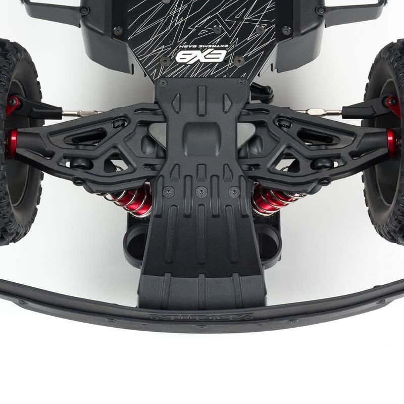 EXB-hardened components throughout its fully assembled chassis give the 1/7 scale ARRMA® MOJAVE™ EXtreme Bash Desert Truck 4WD the toughness to tackle any track. Just install your electronics and the finished EXB body — then bash without boundaries.