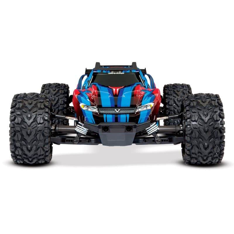 The Traxxas Rustler 4x4 VXL screams performance, speed, and durability! Slated with a low center of gravity layout & big power from the Velineon VXL brushless system, you'll be able to handle extreme speeds up to 65MPH! Large tires means you'll be rolling over any obstacle standing in the way. To handle the power, the Rustler 4X4 VXL is fitted with Traxxas' beefier drive shafts and an aluminum center driveshaft, ready to take your abuse. Pull the throttle full blast, and the two front tires will reach for the sky while riding on the rear wheels and wheelie bar. A crew favorite, nothing can go wrong adding the Traxxas 4X4 VXL to your RC fleet!