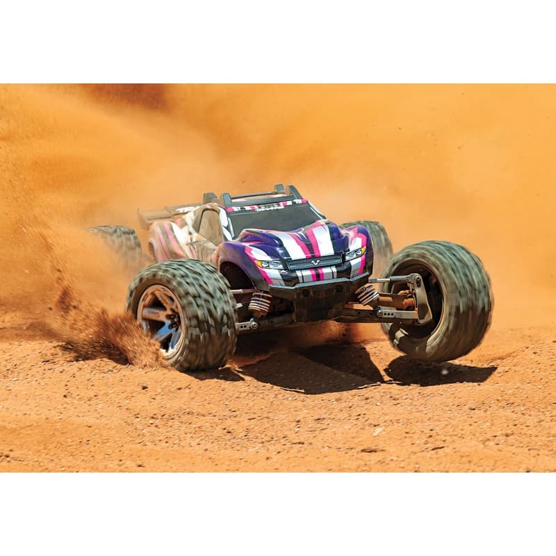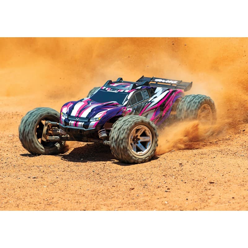 The Traxxas Rustler 4x4 VXL screams performance, speed, and durability! Slated with a low center of gravity layout & big power from the Velineon VXL brushless system, you'll be able to handle extreme speeds up to 65MPH! Large tires means you'll be rolling over any obstacle standing in the way. To handle the power, the Rustler 4X4 VXL is fitted with Traxxas' beefier drive shafts and an aluminum center driveshaft, ready to take your abuse. Pull the throttle full blast, and the two front tires will reach for the sky while riding on the rear wheels and wheelie bar. A crew favorite, nothing can go wrong adding the Traxxas 4X4 VXL to your RC fleet!