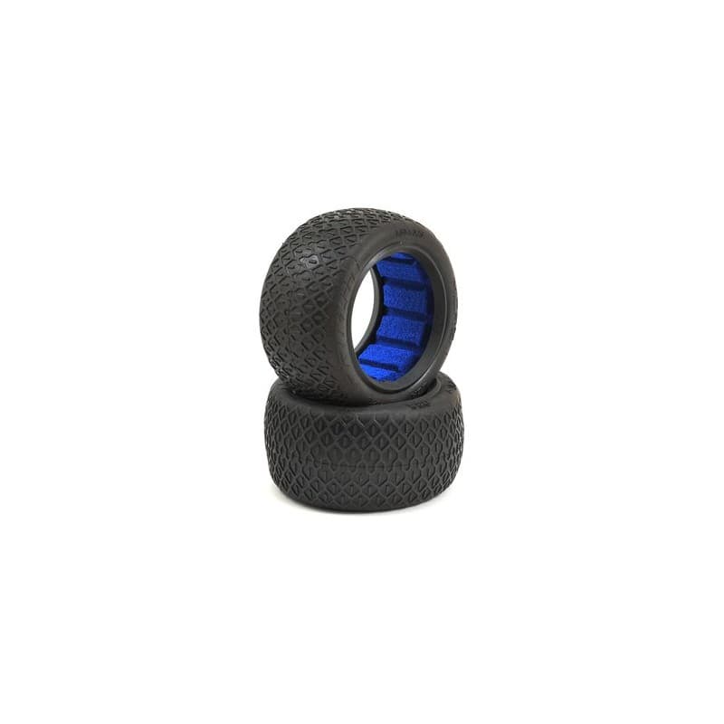 Pro-Line Micron 2.2" Rear Buggy Tires are the perfect complement to the Electron giving racers a lower pin option when the track conditions require it. Using connected tread technology similar to the Electron, the Micron was designed with an emphasis on creating as many forward facing edges as possible for maximum forward grip. The center tread zig-zags back and forth for both great forward bite and side bite while maintaining good wear for such a low tread height.