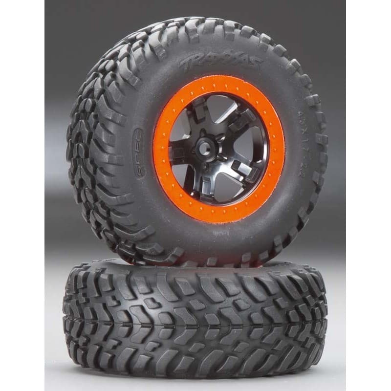 This is a pair of Traxxas Short Course Tires and Wheels.