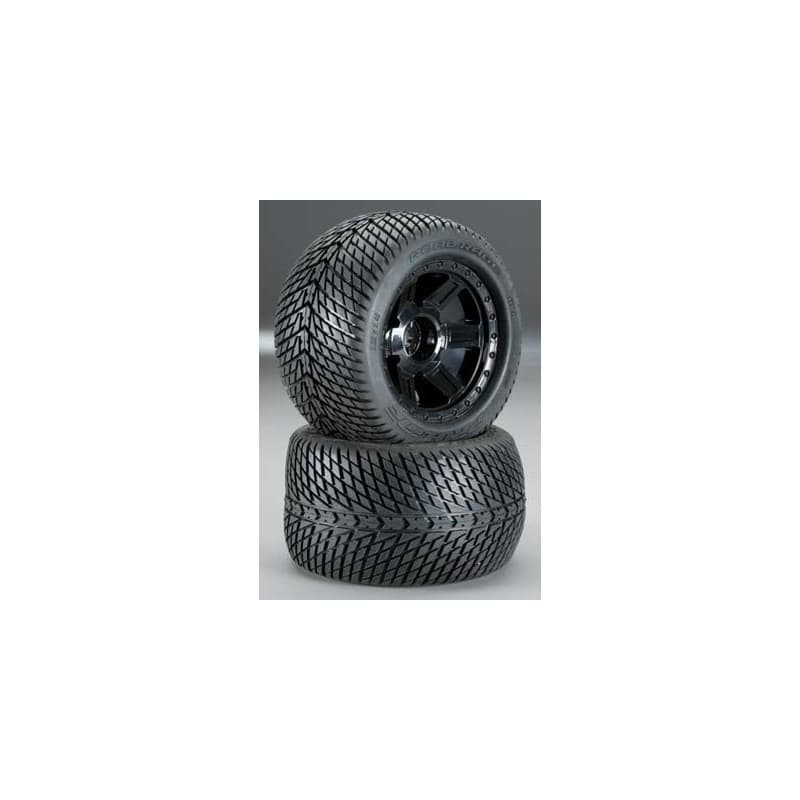 When racing around the neighborhood or venturing down to your local on-road race event, your typical street tread design does not support the traction and handling characteristics that you are looking for. So what do you do? You purchase Pro-Line's Road Rage 3.8" tires. Incorporating an ultra-low sidewall, the Road Rage tires offer the maximum in predictability, stability, and responsiveness. When you turn, they turn harder, when you brake, they brake quicker. These Road Rage tires just plain work.