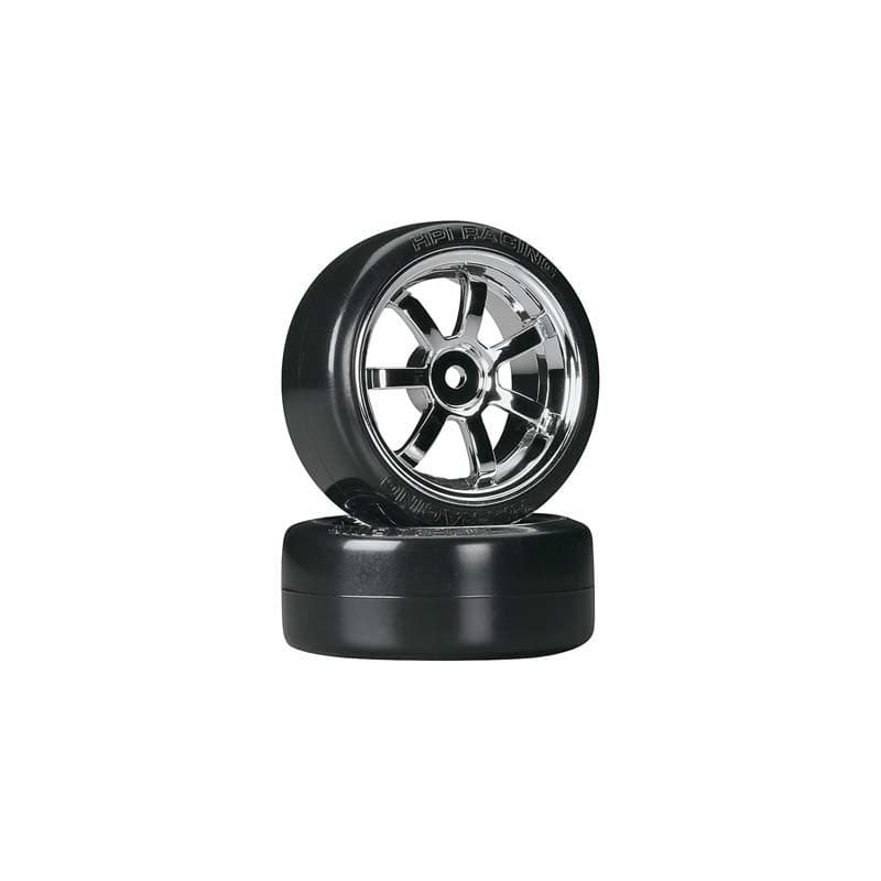 These are the 26mm T-Drift Rays 57S-Pro Premounted Tires and Wheels from HPI Racing.