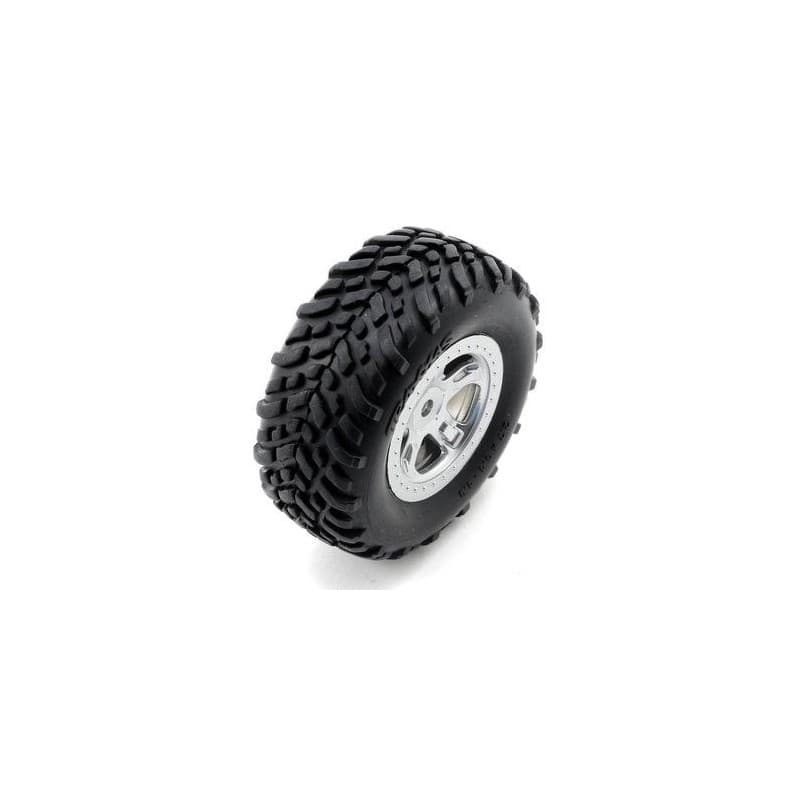 This is a pack of two replacement Traxxas SCT Tires Pre-Mounted on Satin Chrome Wheels. These tires are completely pre-assembled with foam inserts, glued up and ready for action!