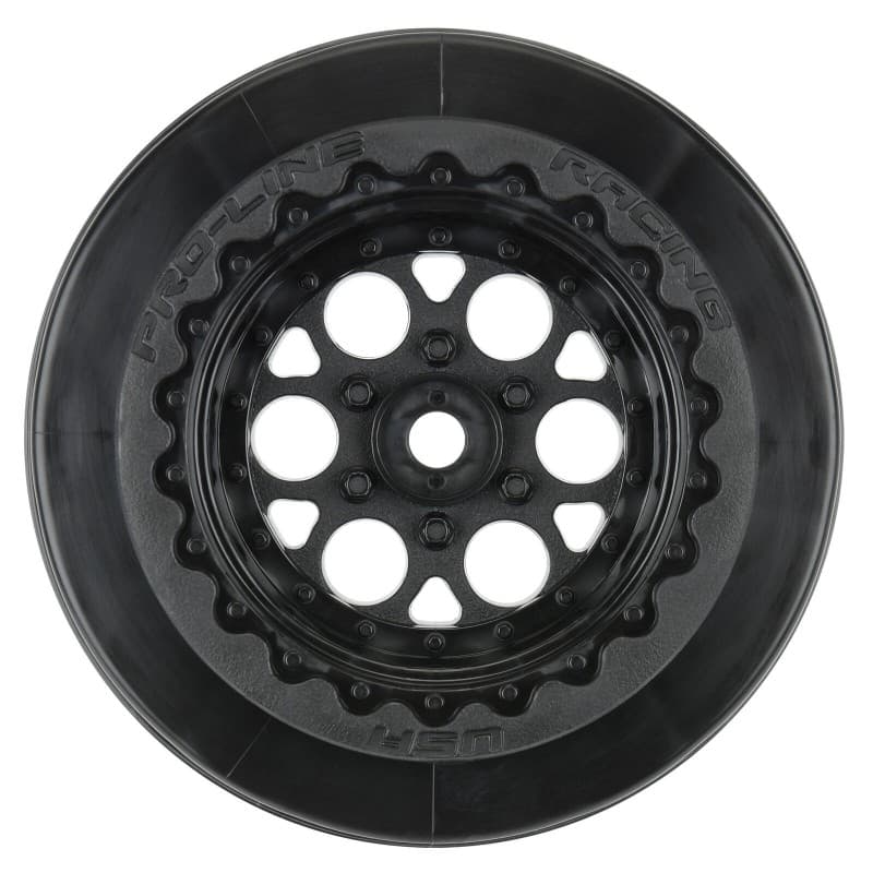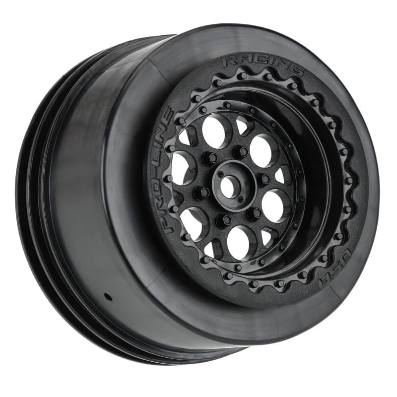 It's Showtime! Pro-Line has an all-new Wide SC format Black Drag wheel featuring a scale spoke pattern that mimics full-size drag wheels. The Showtime+ Wide SC wheel is a perfect fit for Pro-Line's new Reaction+ HP Wide SC tires (PRO10188203), but this wheel is also designed to fit standard width 2.2"/3.0" SC tires using the extra inner bead channel. The Showtime+ wheels are strong and lightweight 12mm hex wheels making them the ideal choice for performance drag racing. The wheel offset is ideal for Losi® 22S™ No Prep Drag Car (LOS03035T1), 2wd Slash® trucks converted to no-prep Drag Racing cars and AE DR10. The Showtime+ Wide SC Drag wheel and every other wheel that Pro-Line makes is proudly Made in the USA. Launch your no-prep Dragster to the next level with the Pro-Line Showtime+ Wide SC Drag Wheels today!