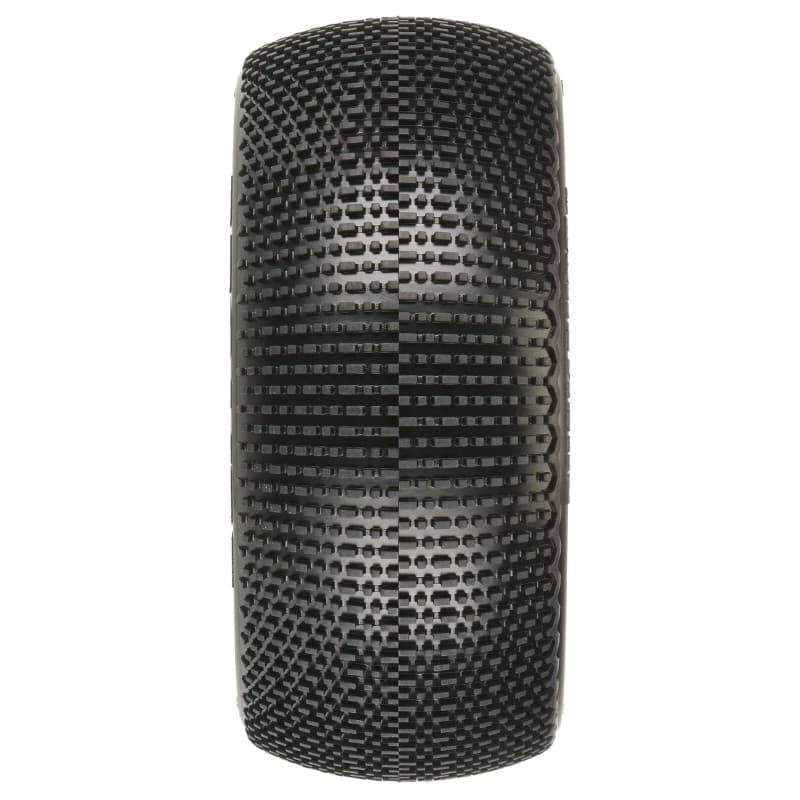 This is a pair of pre-mounted Buck Shot 1:8 Truggy Race Tires. The Buck Shot debuted at the 2017 ROAR National Championships and is already a Winner at the hands Pro-Line Team Driver Ty Tessmann! The Buck Shot has pins that are very close in size to the amazing Hole Shot 2.0 but the Buck Shot pins are stacked closer together side to side, which provides significantly longer-lasting performance. Unique to the Buck Shot are the alternating elongated bars that provide incredible forward grip! Like the extremely popular SwitchBlade tire, the Buck Shot is a directional tire with different tread on the outside compared to the inside, allowing you to mount the tires in the direction that suits your current track conditions. One side of the tire has standard pins, which is ideal for loose or low traction conditions where you want the tire to add side grip and improve steering. When you mount the tire the other direction, the connected side tread (Blade) reduces side traction in high-bite or edgy conditions. Racers who have tried the Buck Shot are saying that it is their new favorite tire!