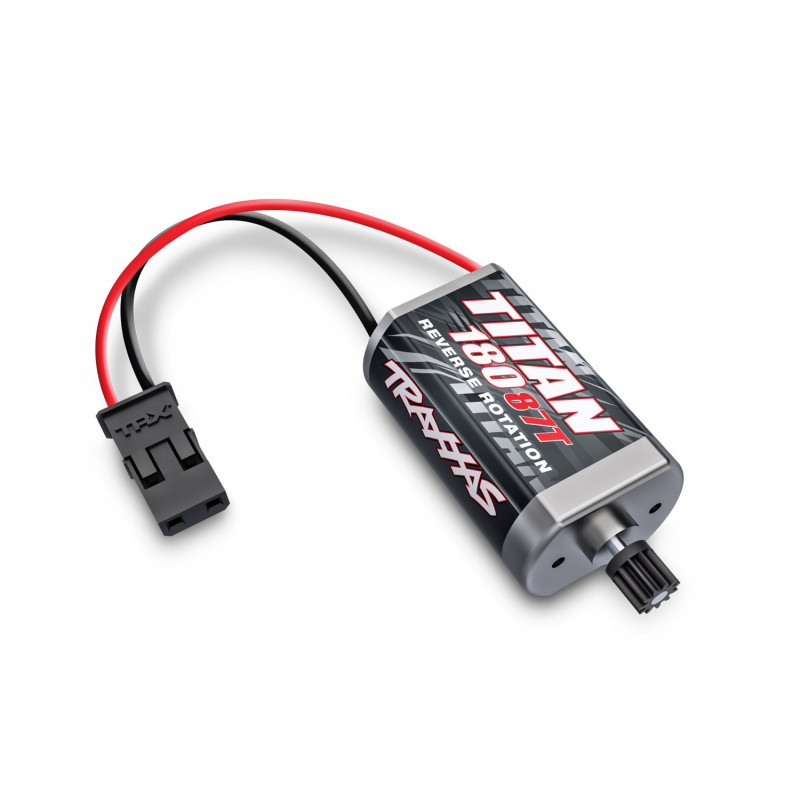Designed for the TRX-4M™, the Titan® 180 motor features 87 turns of wire for dramatic torque in a micro motor. The motor comes with an 11-tooth metal pinion gear and motor plug for the ECM-2.5 control module.