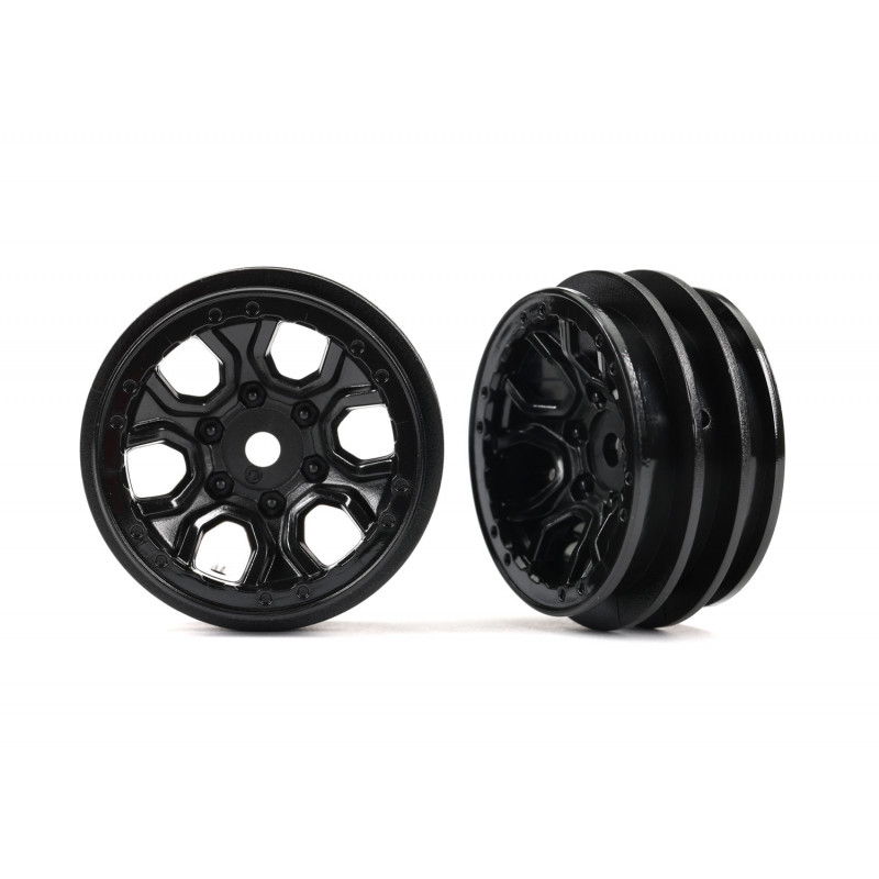 Designed for TRX-4M™ models, these 1.0" black multi-spoke wheels hold the tire securely for rugged crawling action. Sold as a pair. (Fits 7 mm wheel hex).