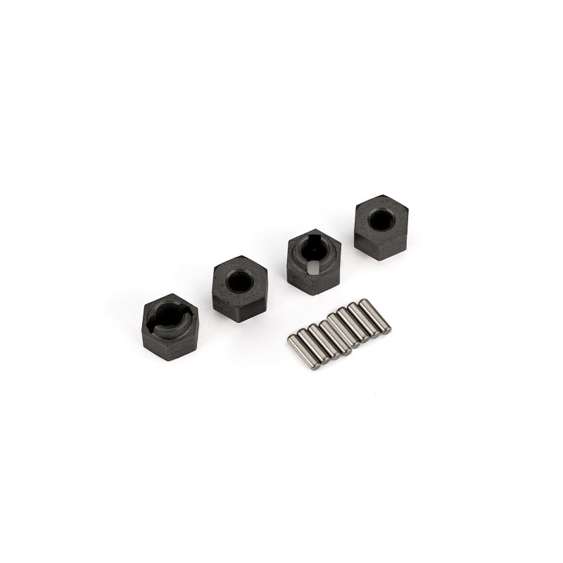 Set of four composite 7 mm wheel hubs with axle pins (8).