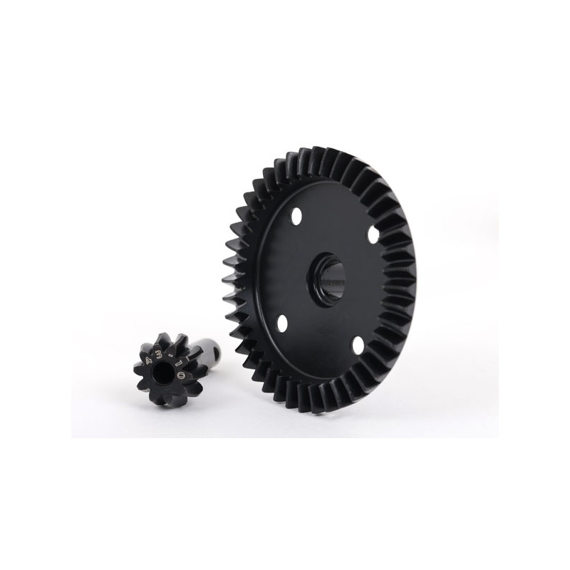Made for the most extreme action, spiral-cut 43-tooth ring and 10-tooth pinion differential gear sets are CNC-machined from a solid block of steel. The teeth are cut with a slight curve to minimize backlash between gears and maximize tooth traction with more surface area than straight-cut gears.