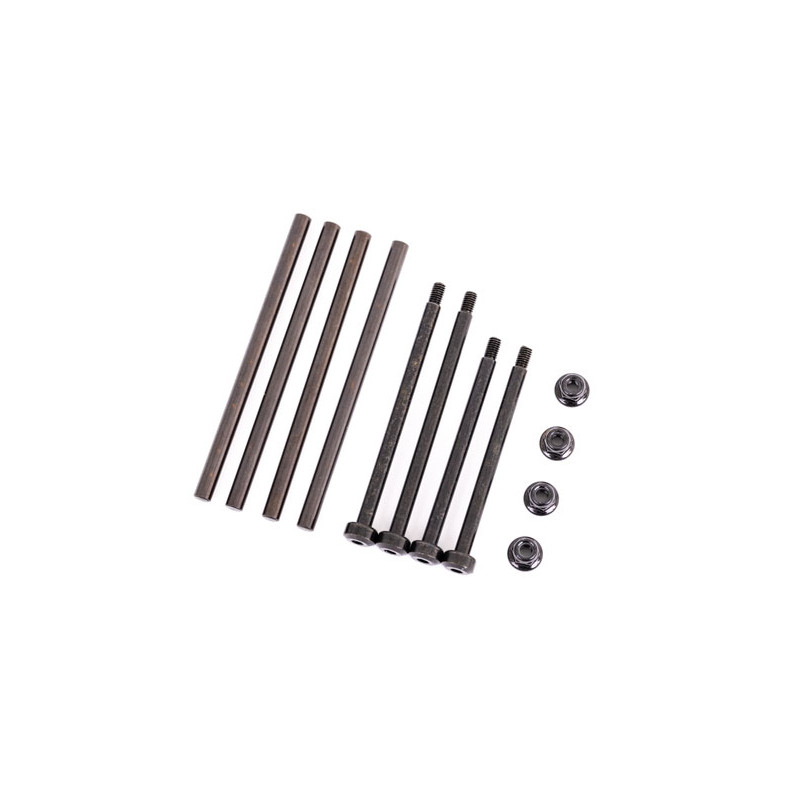 The front and rear hardened steel suspension pin set includes 4x67 mm pins (4), 3.5x48.2 mm pins (2), 3.5x56.7 mm pins (2), and flanged lock nuts (4).