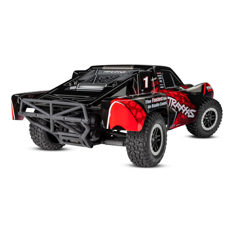 The Traxxas Slash VXL puts you in the driver’s seat for intense fender-to-fender, high-flying off-road action. Since its introduction, the Slash has set the standard for durability, performance, and technology. Traxxas Stability Management® puts Slash VXL’s tire-shredding power to the ground while making it incredibly agile and easily controllable. Extreme Velineon brushless power provides screaming 60+mph† speed while the advanced TQi™ radio system keeps everything under precise control. With just one drive you will see why the Traxxas Slash VXL elevates short course performance to a whole new level.