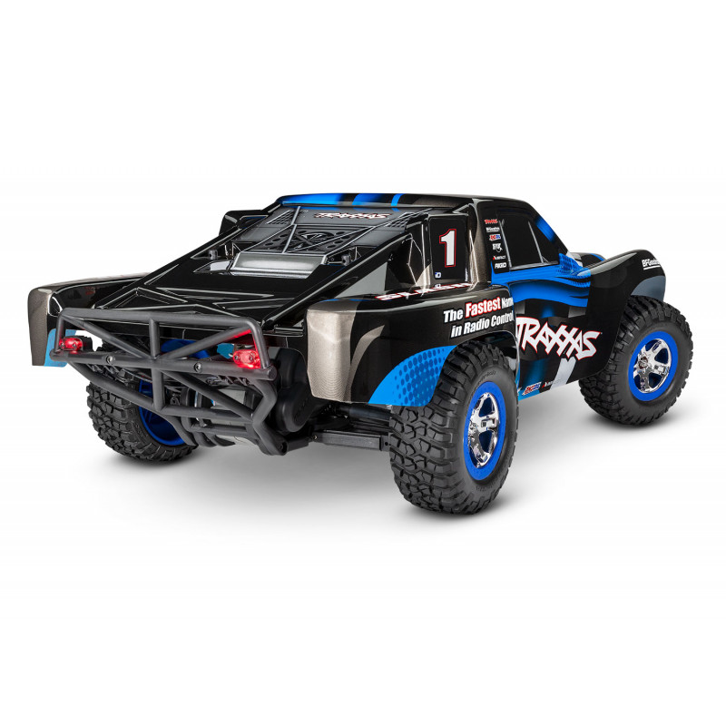 The award-winning Traxxas Slash short-course race truck puts you in the driver’s seat for intense fender-to-fender, high-flying off-road action. Full-scale short-course race trucks embody the spirit of Traxxas RC with their extreme 900+ horsepower racing engines full-throttle, dirt-roosting power slides, giant suspension travel, and big-air jumps. The Traxxas Slash brings all the action home so you can experience the high-speed head-to-head competition at the track or in your own backyard. The rear-wheel drive Slash is purpose built to fly over jumps and rip full-throttle through the turns. Slash hangs it out for an all new way to challenge your driving skills. The 4-wheel independent suspension has been carefully tuned to replicate the real world driving and handling experience as closely as possible. The scale appearing tires provide just the right amount of bite and thick, blinding clouds of dirt roost.