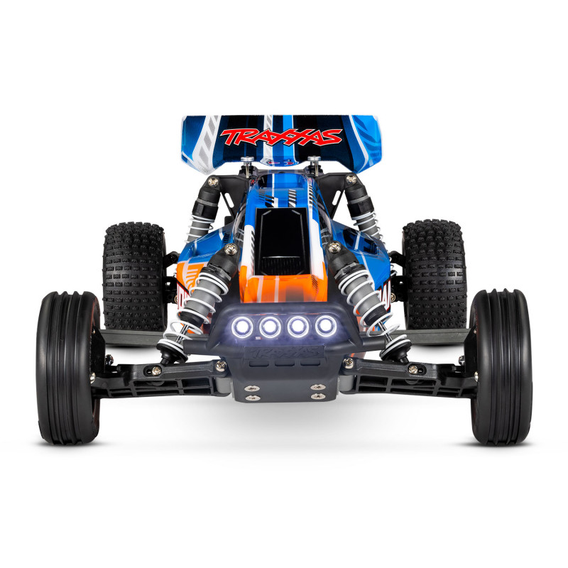 The Traxxas Bandit® elevates RC buggy performance to a whole new level with faster speeds, innovative technology, hobby-grade durability, and a budget-friendly price. Bandit’s sleek, lightweight chassis delivers razor-sharp handling and blazing 35+ MPH* speed with blazing LED lights to guide the way. Pull the trigger and the Bandit rips massive rooster tails, soars over jumps, and lays down the power for excitement at every turn. Equally at home off-road or on pavement, Bandit’s fully waterproof electronics make even the wildest all-weather adventures possible. Step up to genuine Traxxas quality and performance and discover a whole new level of fun with the Traxxas Bandit.